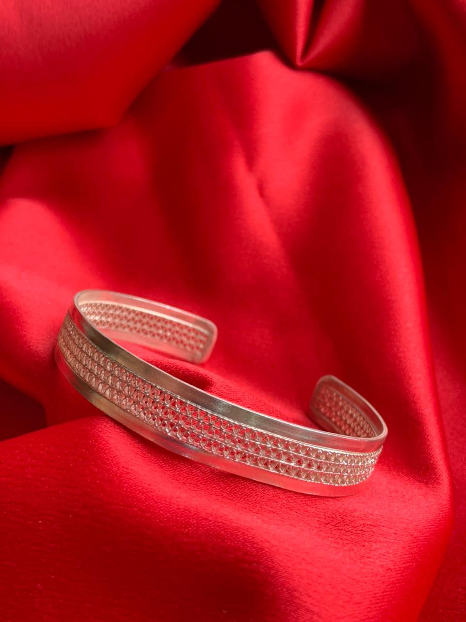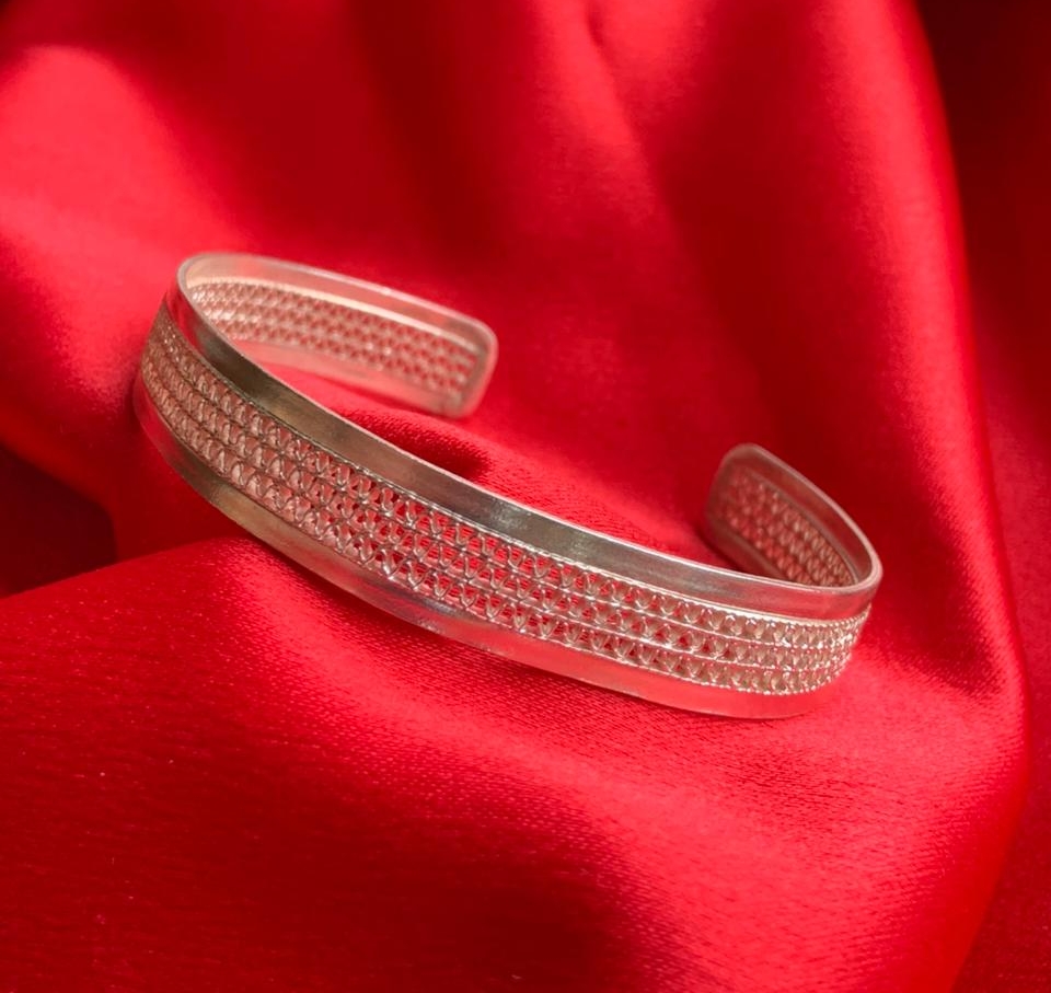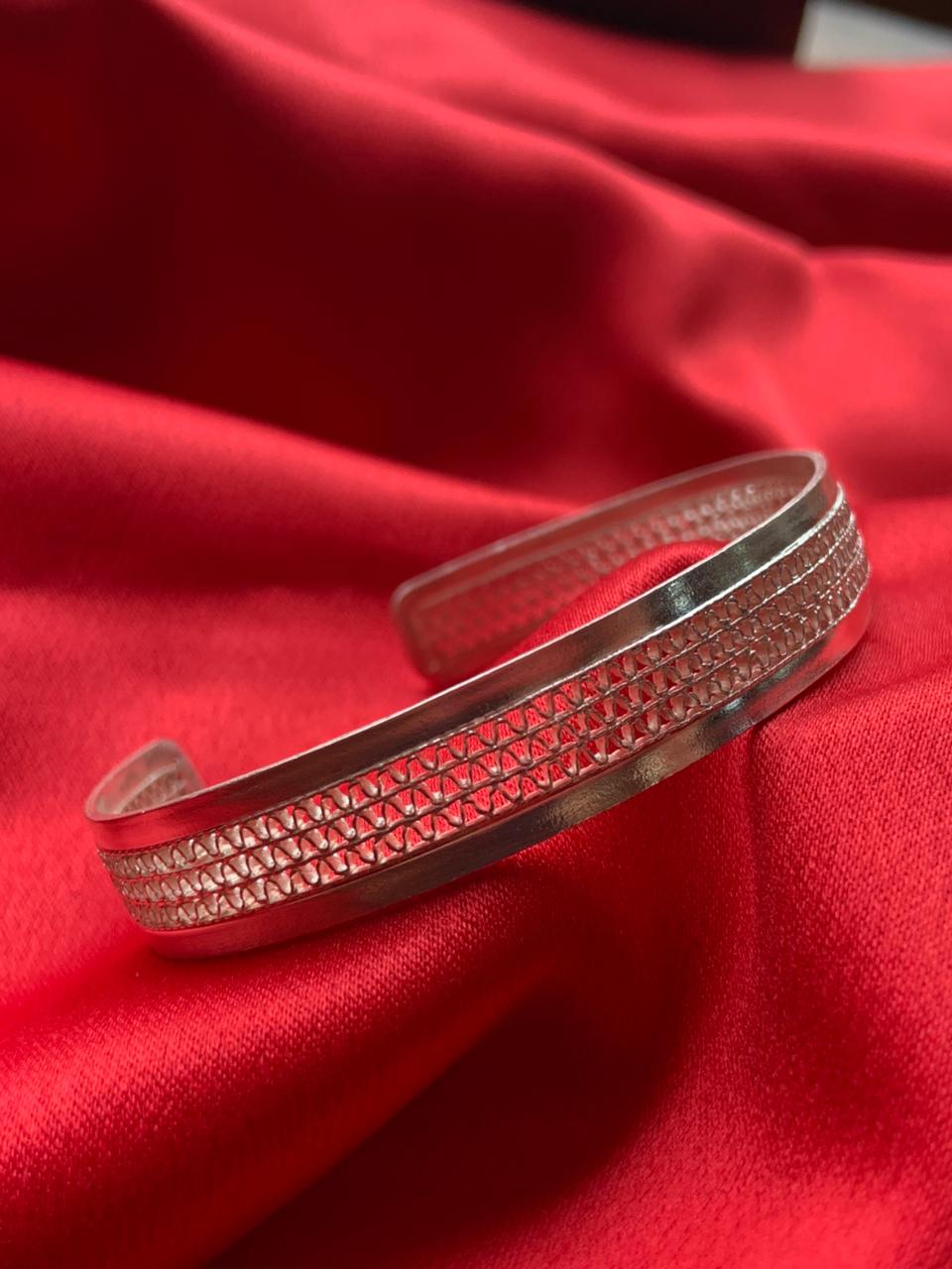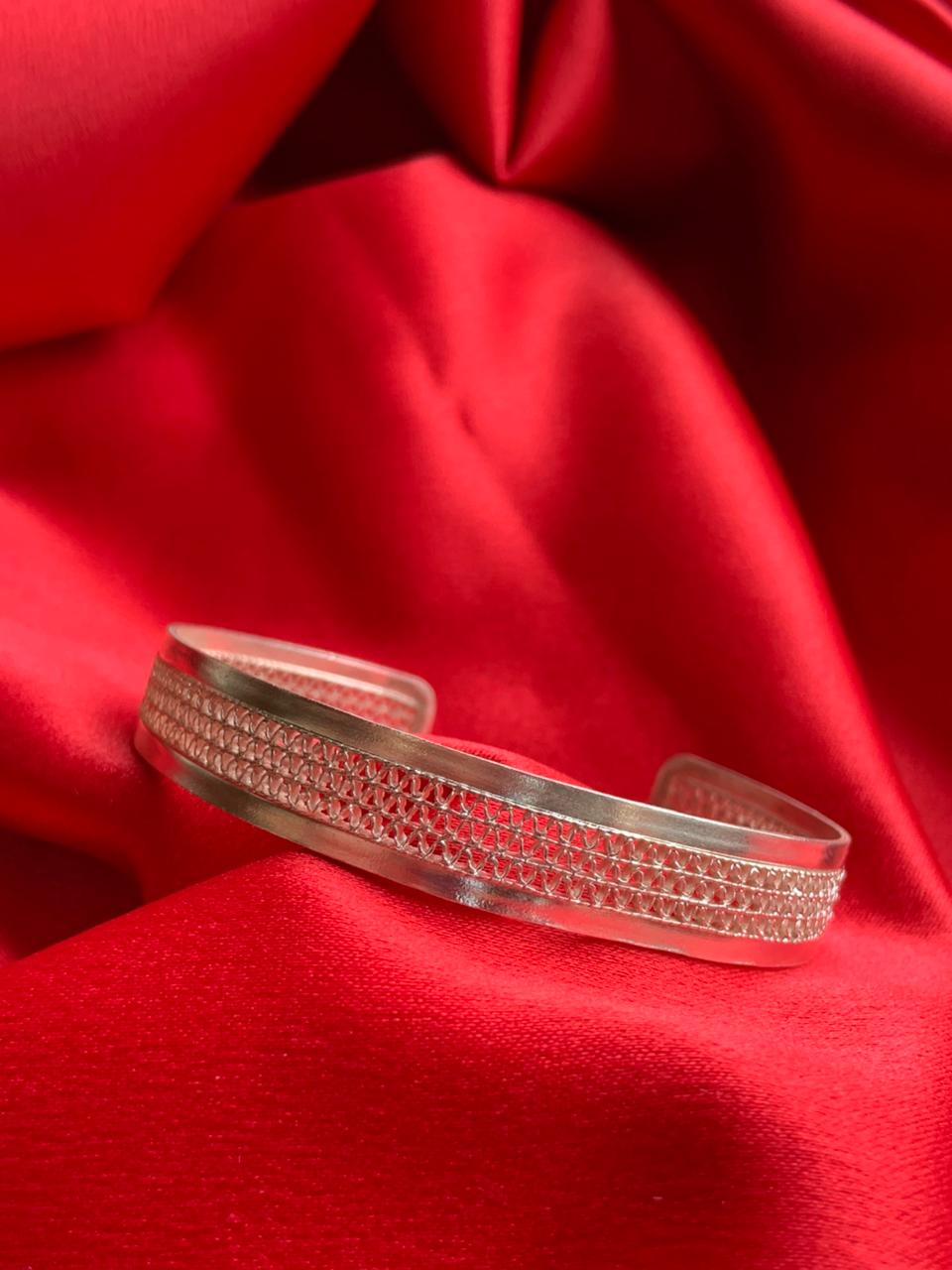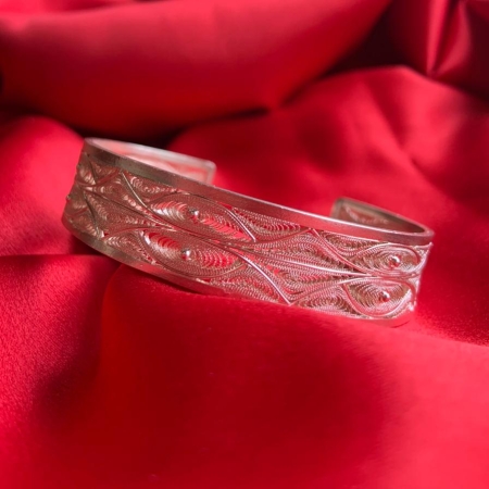 Este bracelete une duas artes ancestrais: a renda Nhanduti, símbolo da teia que conecta histórias, e a filigrana, onde fios de prata 950 se transformam em poesia. Feito à mão, cada ponto carrega tempo, paciência e herança.